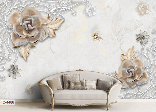 استفاده از گل‌های برجسته و نگین کاری روی پوسترهای لوکس سالن پذیرایی، باعث شده تا یک سری از این دیوارپوش‌ها، در دسته بندی لاکچری قرار گرفته و به شکلی متفاوت دیده شوند.