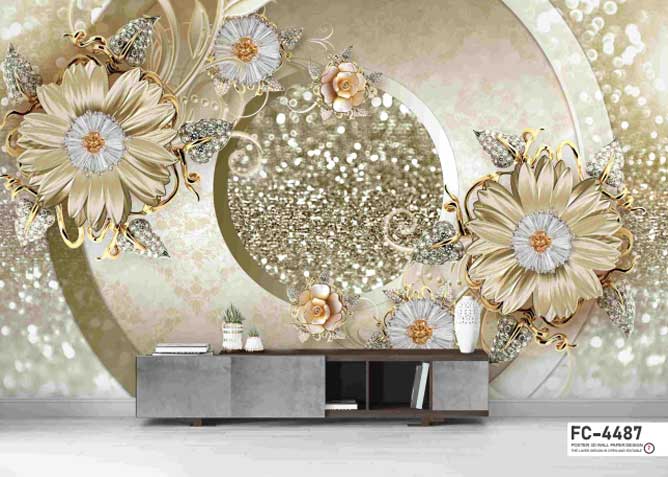 استفاده از گل‌های برجسته و نگین کاری روی پوسترهای لوکس سالن پذیرایی، باعث شده تا یک سری از این دیوارپوش‌ها، در دسته بندی لاکچری قرار گرفته و به شکلی متفاوت دیده شوند.