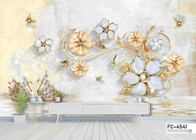 استفاده از گل‌های برجسته و نگین کاری روی پوسترهای لوکس سالن پذیرایی، باعث شده تا یک سری از این دیوارپوش‌ها، در دسته بندی لاکچری قرار گرفته و به شکلی متفاوت دیده شوند.