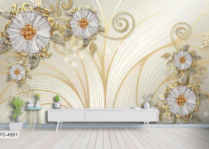 استفاده از گل‌های برجسته و نگین کاری روی پوسترهای لوکس سالن پذیرایی، باعث شده تا یک سری از این دیوارپوش‌ها، در دسته بندی لاکچری قرار گرفته و به شکلی متفاوت دیده شوند.