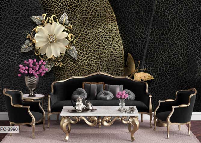 استفاده از گلهای برجسته و نگین کاری روی پوسترهای لوکس سالن پذیرایی، باعث شده تا یک سری از این دیوارپوشها، در دسته بندی لاکچری قرار گرفته و به شکلی متفاوت دیده شوند.