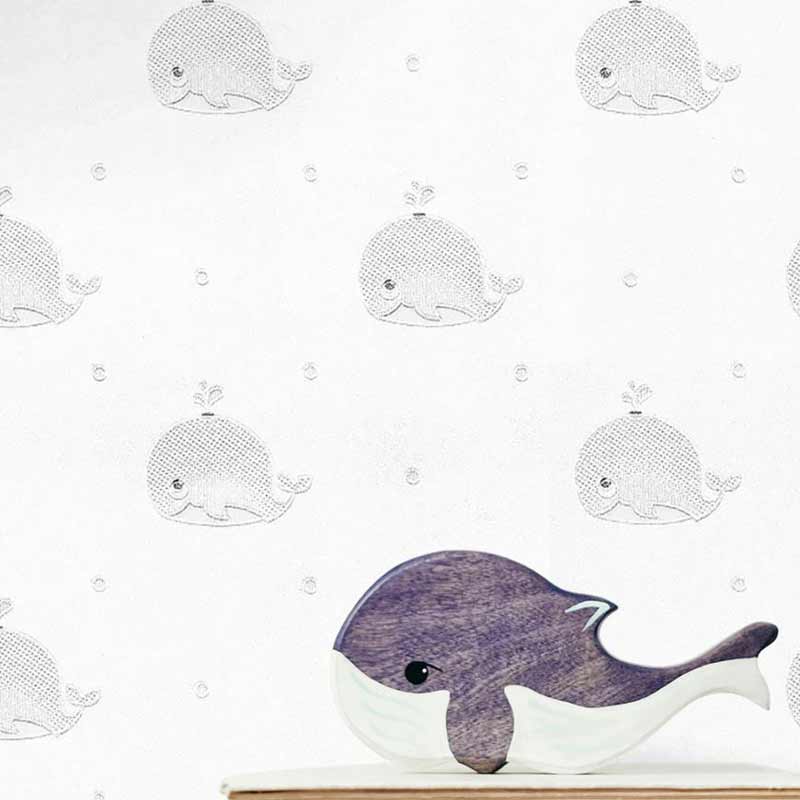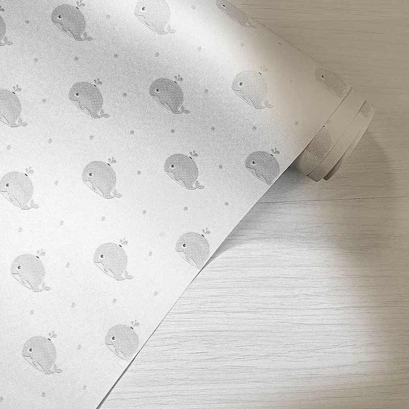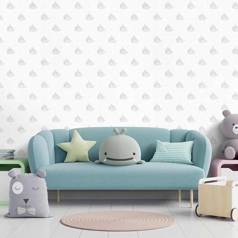 کاغذدیواری کودک طرح نهنگ‌های دریایی | طوسی / سفید کد ۱۲۰۴۱