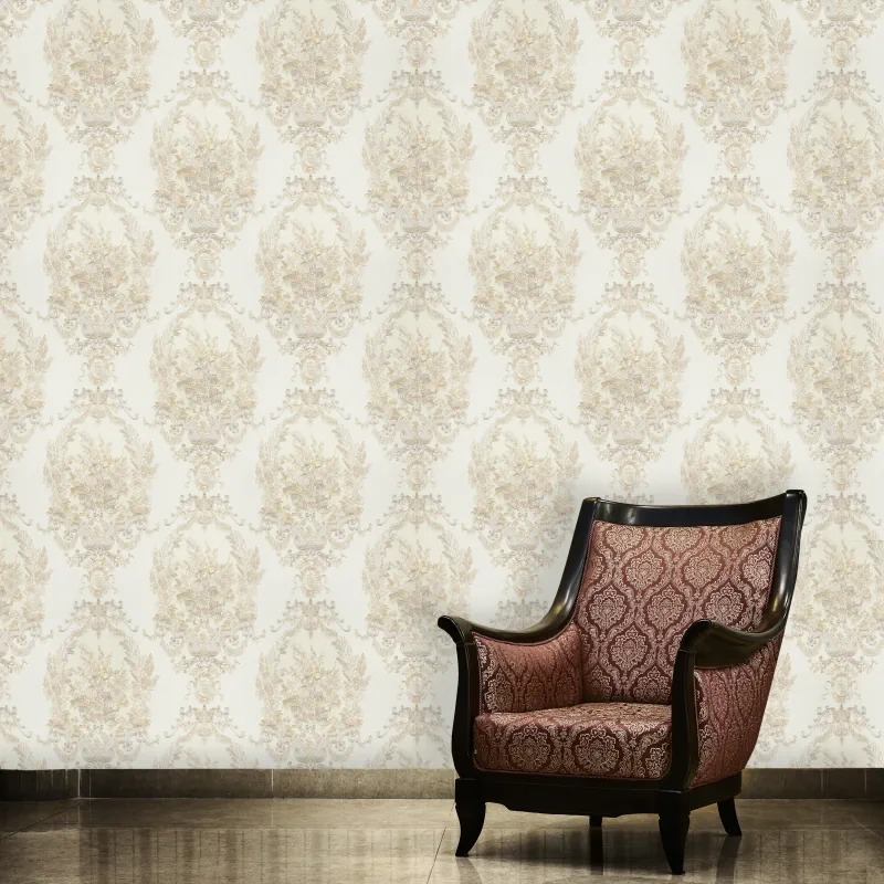 طرح این کاغذ دیواری همان طور که از نام آن پیداست، به صورت داماسک است.