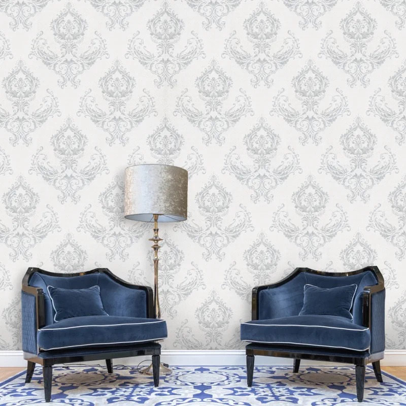 طرح این کاغذ دیواری همان طور که از نام آن پیداست، به صورت داماسک است.